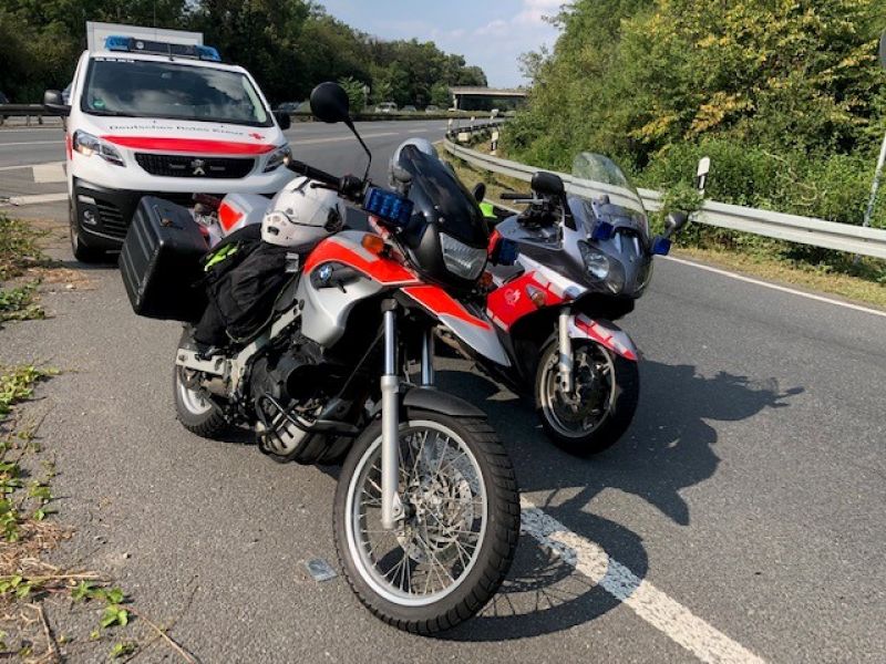 Die Motorräder der Lotsen- und Erkundungsgruppe Kreis Groß-Gerau (Standorte DRK Ortsverein Mainspitze und Einsatzabteilung Wallerstädten der Feuerwehr Groß-Gerau) wurden gemeinsam mit dem Organsisatorischen Leiter Rettungsdienst und den DRK Ortsvereinen Biebesheim und Riedstadt-Stockstadt zu einem Hilfeleistungseinsatz auf die BAB A67 alarmiert.