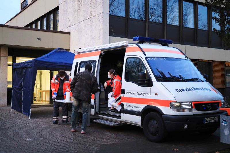 Mit im Team und gleich beim Start dabei auch die Helfer des DRK Ortsvereins Mainspitze. Vier Bischemer Einsatzkräfte und das ELW des Ortsvereins starteten am Dienstag, gemeinsam mit Helfern des DRK Rüsselsheim und des DRK Raunheim-Kelsterbach die Aktion am Standort Rüsselsheim.