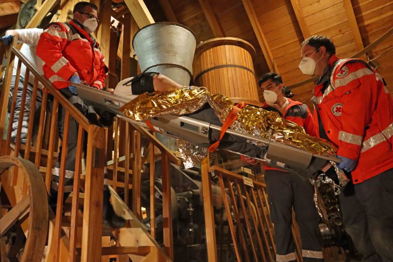 Erstversorgung, Beachtung der Corona-Schutzmaßnahmen bei der Patientenversorgung, Rettung aus dem Gebäude mit einer Schaufeltrage, sowie Lagerung und Fixierung mit der Vakuummatratze auf der bereitgestellten Rolltrage galt es unter räumlich beengten Verhältnissen zu trainieren.